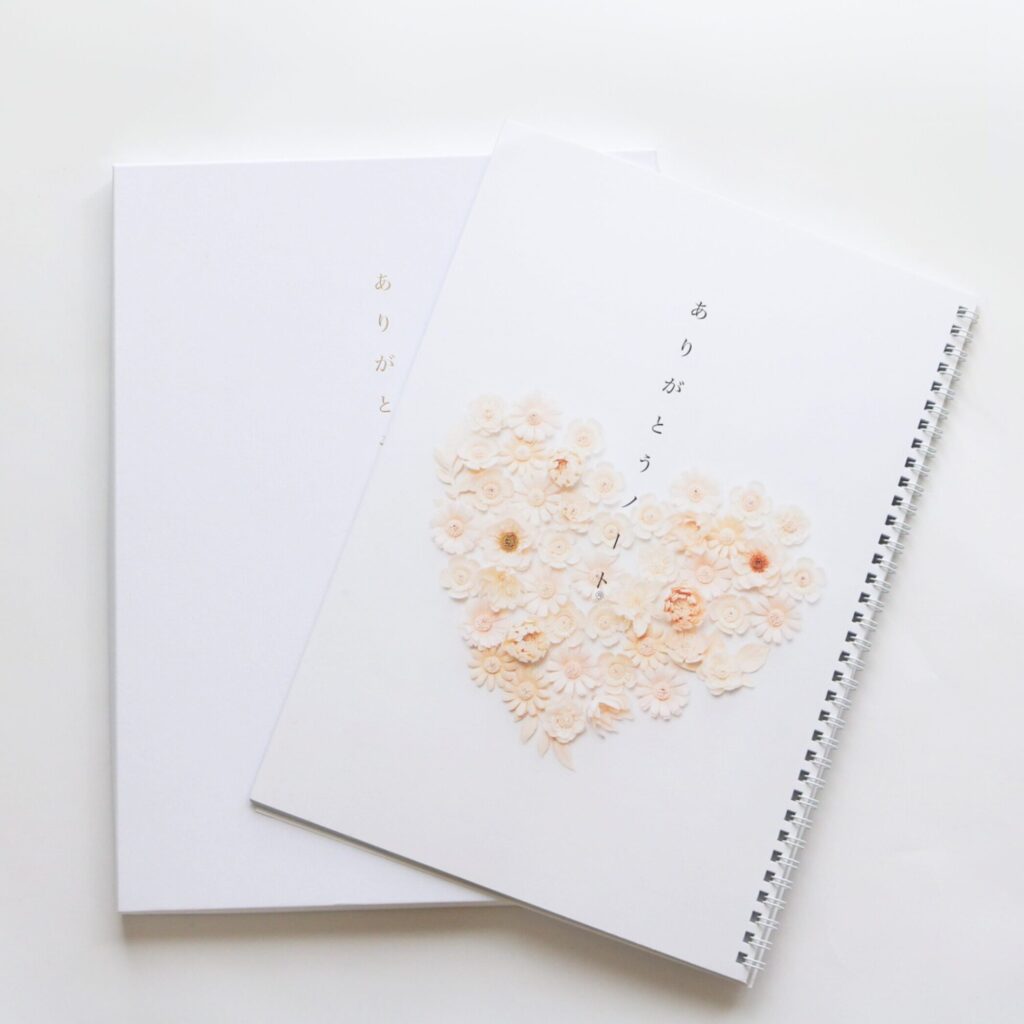ありがとうノートは暗いイメージがないので、とても話がしやすいです。母と一緒に書こうと思っています。白い箱も高級感があって良いですね。