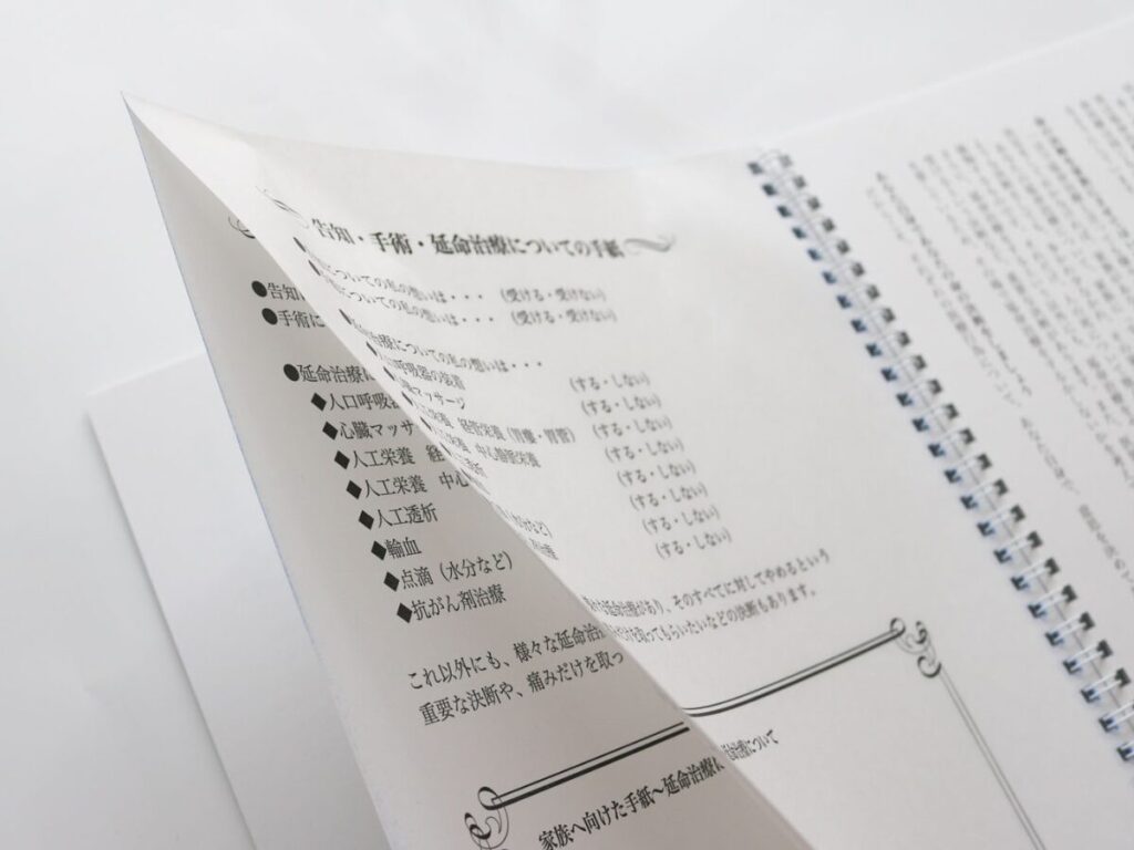 複写を副本に綴じれば、自分の意思を家族に伝えられます。コミュニケーションのツールとしてご活用いただけます。